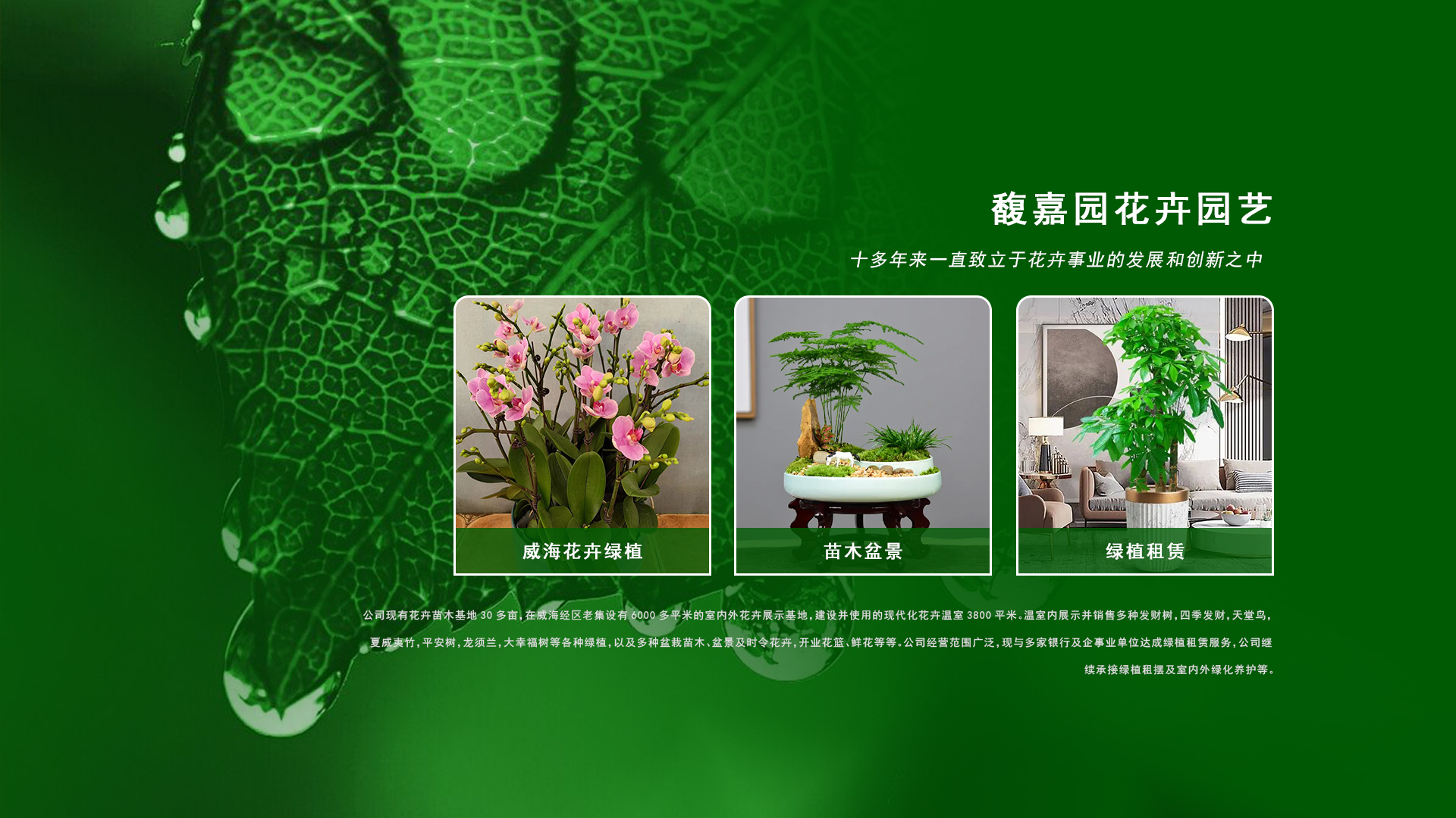公司現有花卉苗木基地30多畝,在威海經區(qū)老集設有6000多平米的室內外花卉展示基地,建設并使用的現代化花卉溫室3800平米